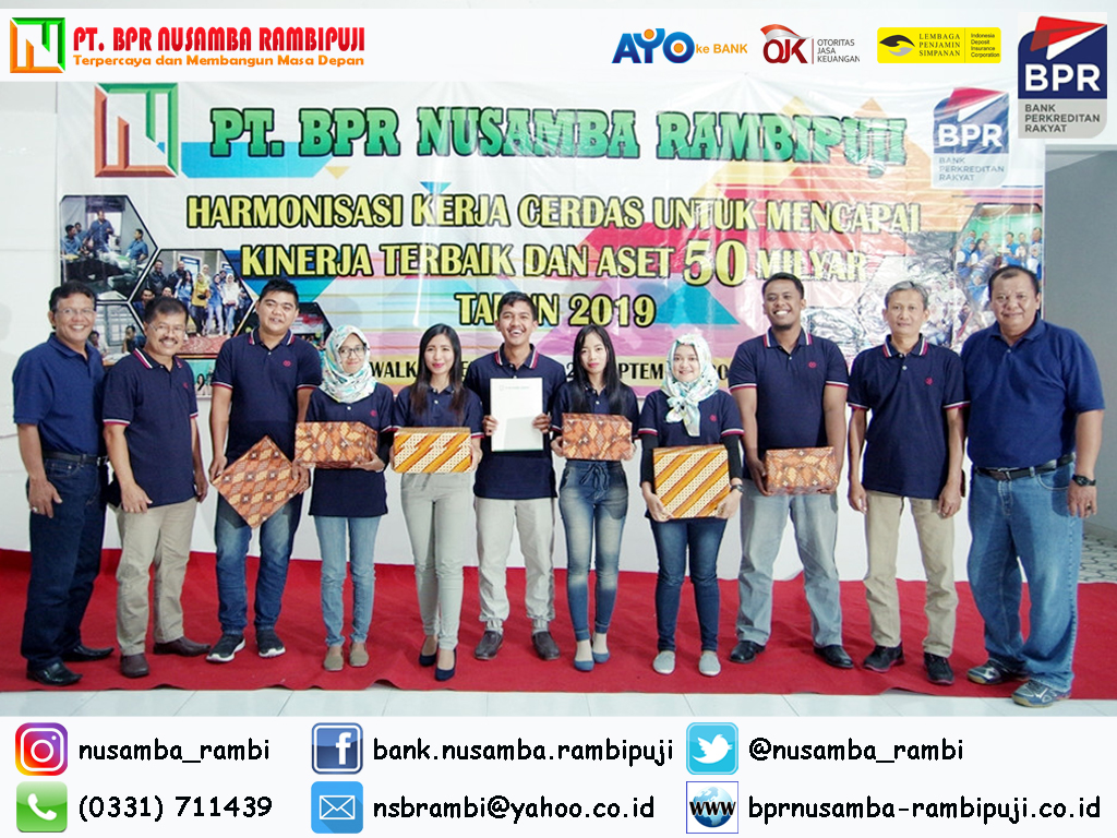 PT. BPR NUSAMBA RAMBIPUJI selalu mengapresiasi setiap kinerja dari masing-masing karyawan, dan berikut ini merupakan karyawan-karyawan dengan kinerja terbaik selama bulan januari - agustus 2018, antara lain :