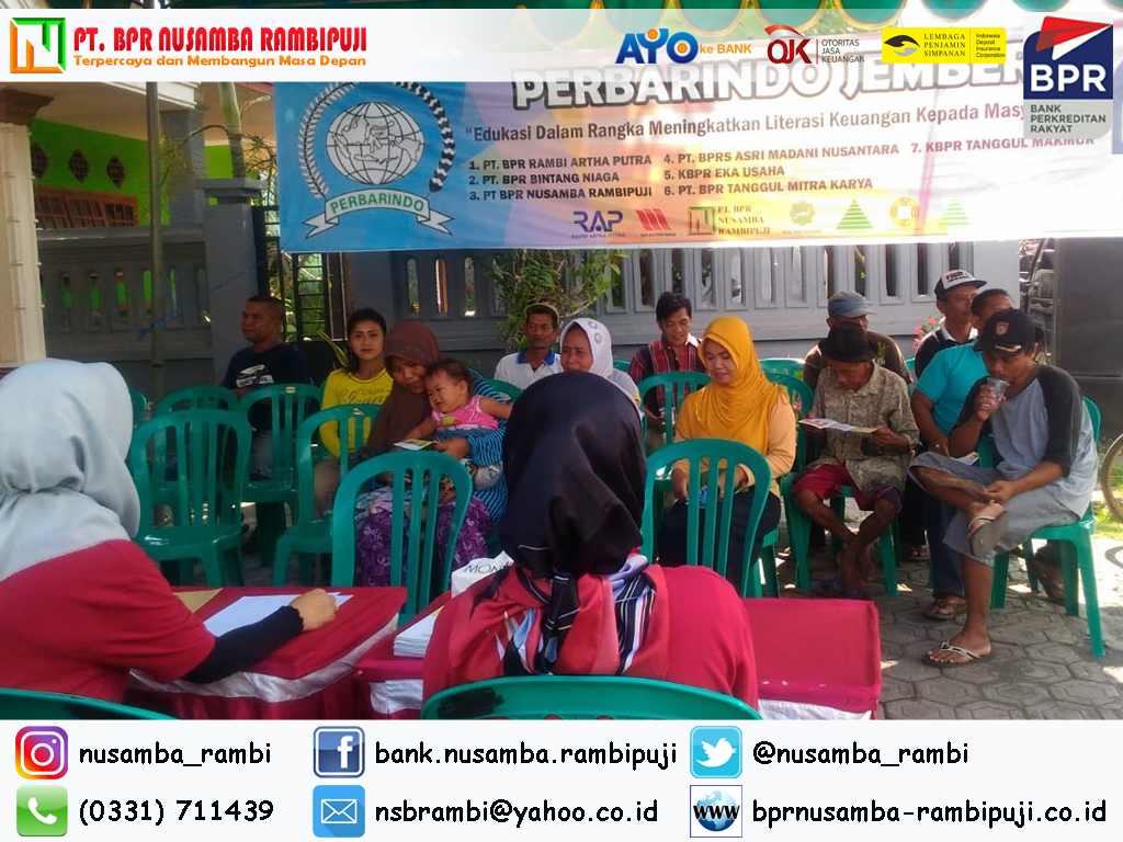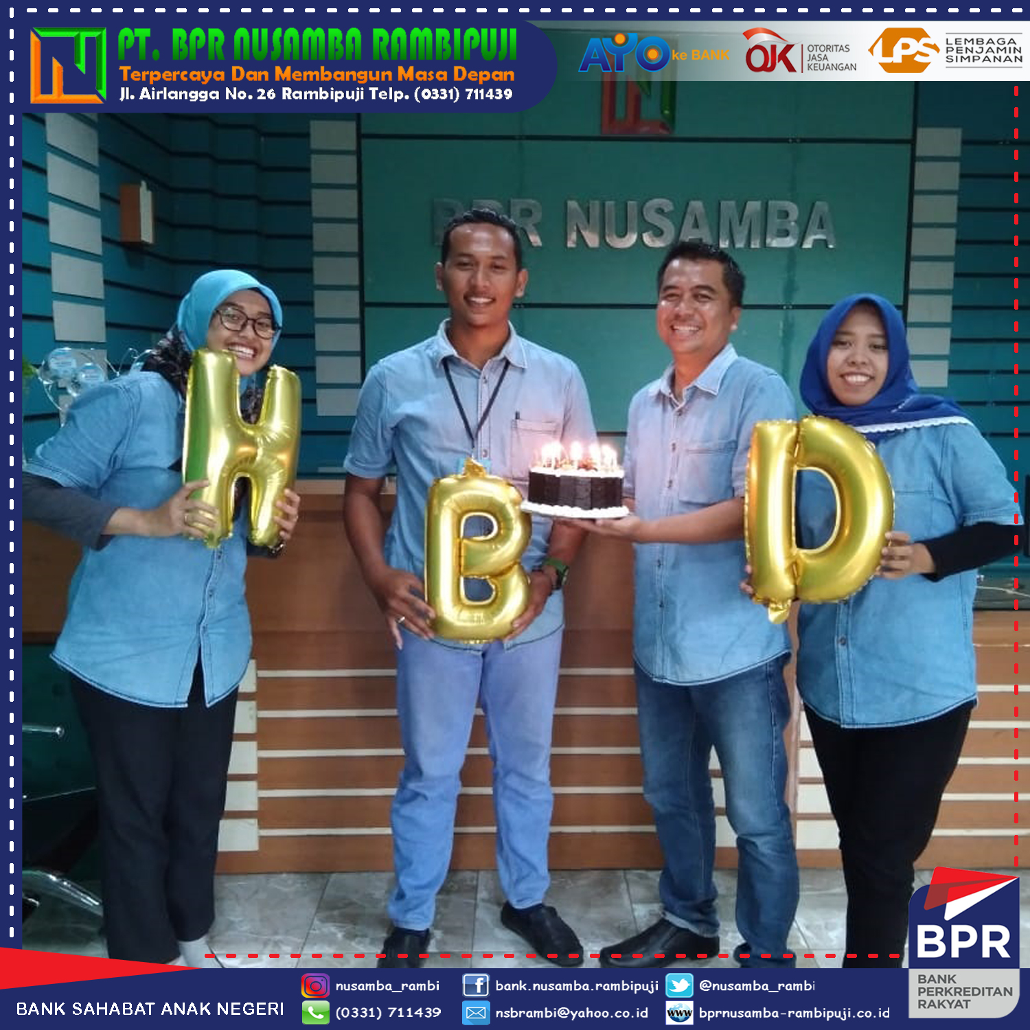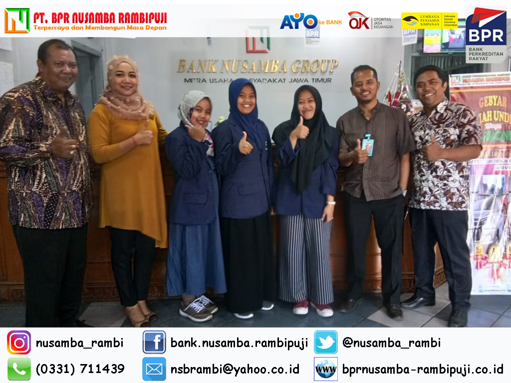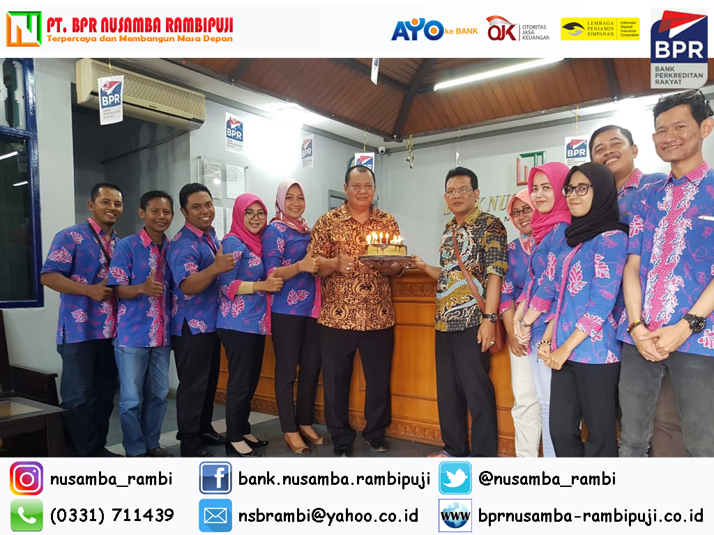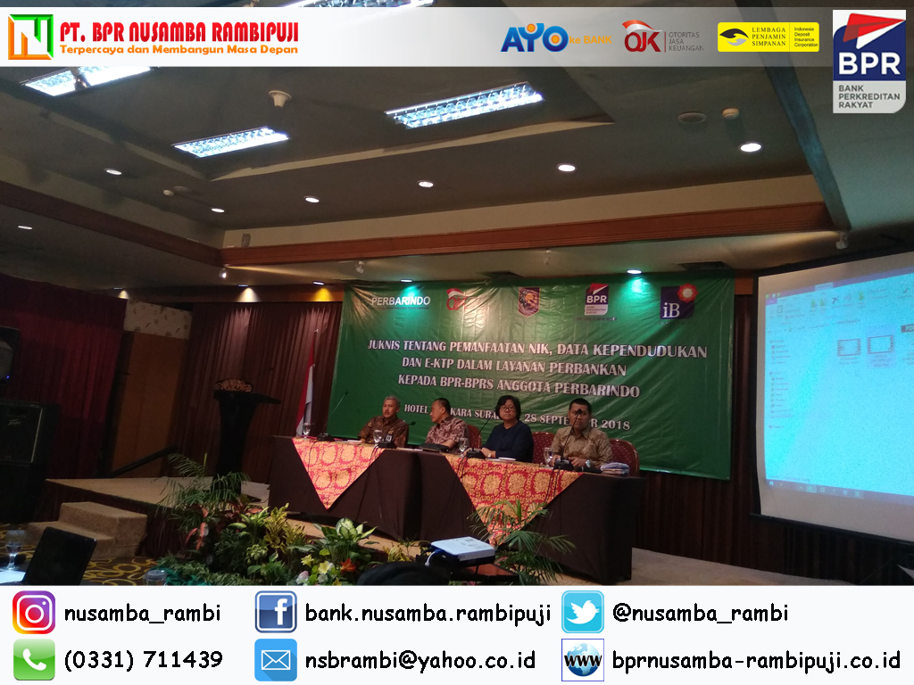 Pada tanggal 6 Oktober 2018 bertempat di Ruang Meeting Taman Botani Sukorambi Jember, PT. BPR NUSAMBA RAMBIPUJI mengadakan Pelatihan Penajaman Analisa Kredit Berbasis Scoring dengan pemateri Bapak Dingot Sinaga, SE. MM selaku Komisaris Utama PT. BPR NUSAMBA RAMBIPUJI yang diikuti oleh Dewan Direksi, Kepala Bidang, Kepala Kantor Kas, Staff Account Officer, dan Staff Funding Officer.